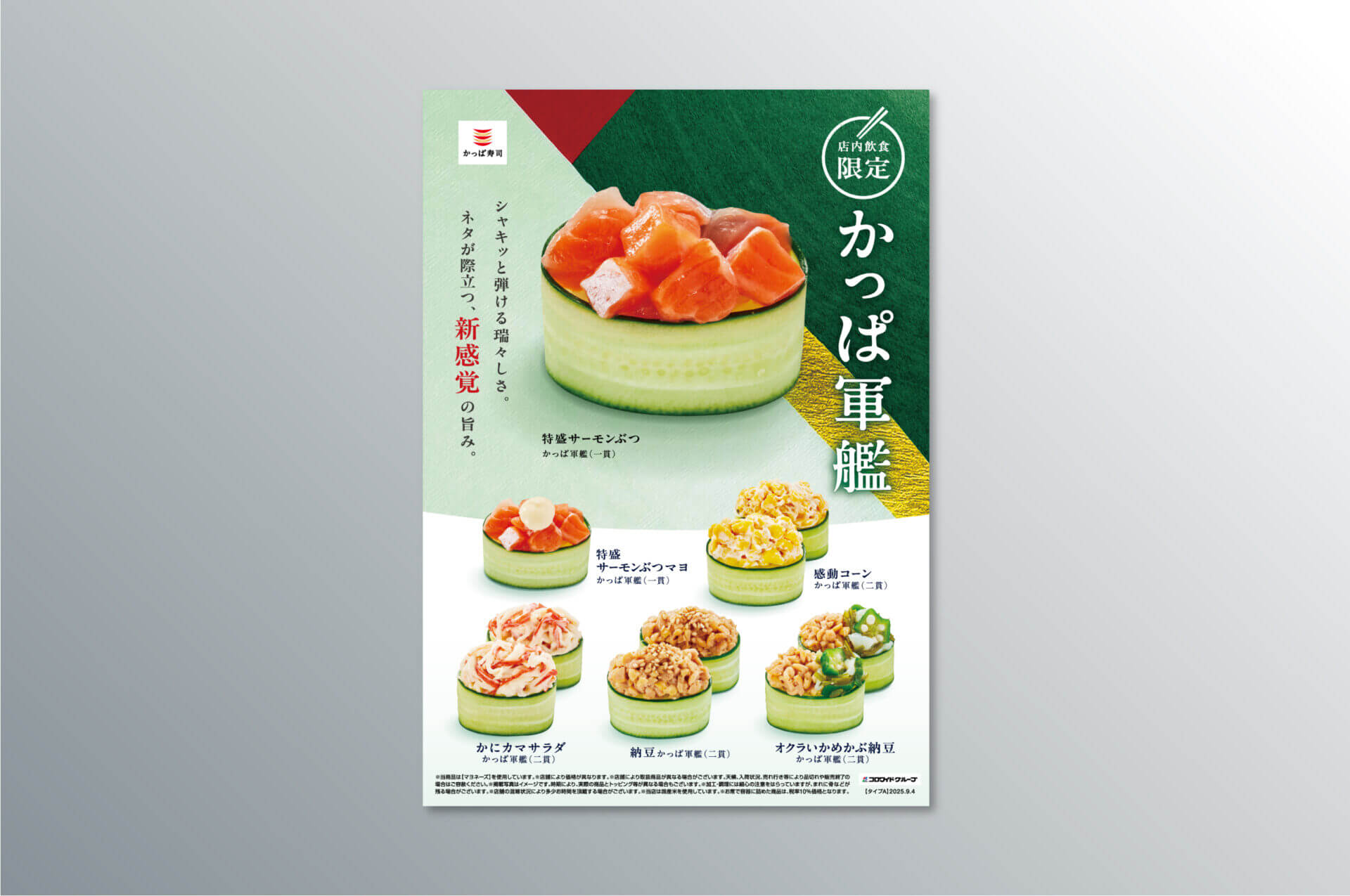 既存商品「かっぱ軍艦」の販促強化を目的とした、ポスターのリデザインのご相談をいただきました。