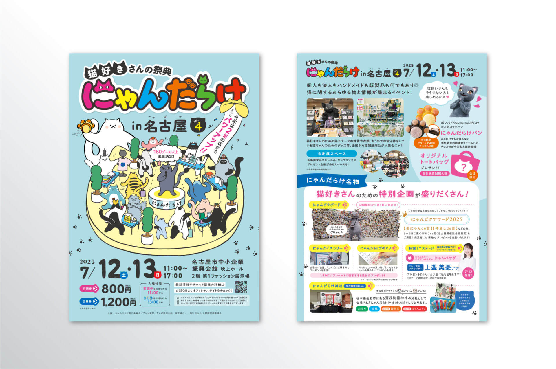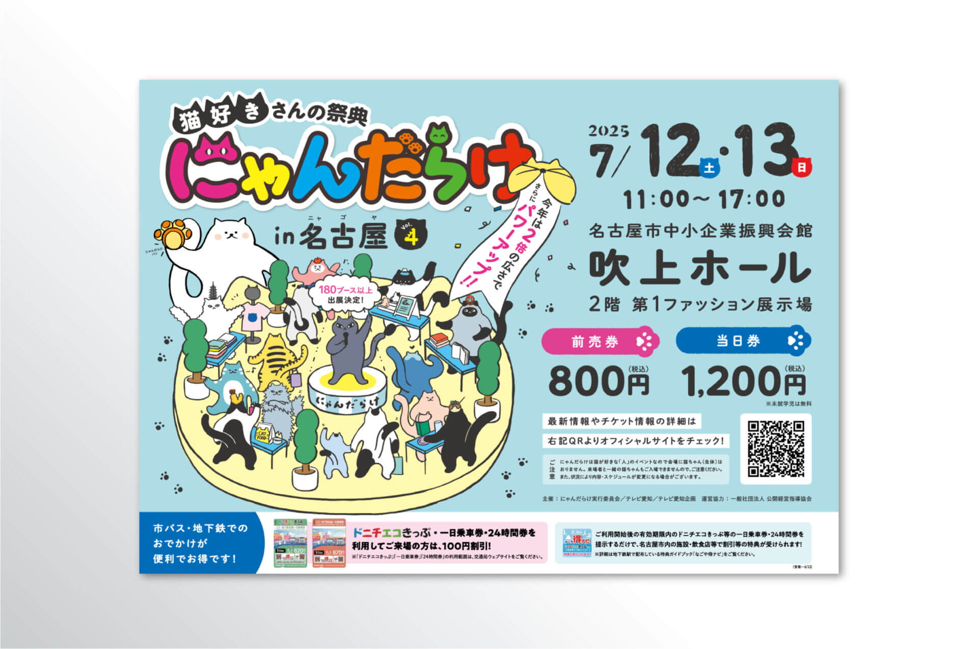 猫好きさんのイベント「にゃんだらけ」は東京を中心に2016年から年2回開催される大人気イベントです。昨年に引き続き、ポスター及びチラシのメインビジュアルをご依頼いただきました。
