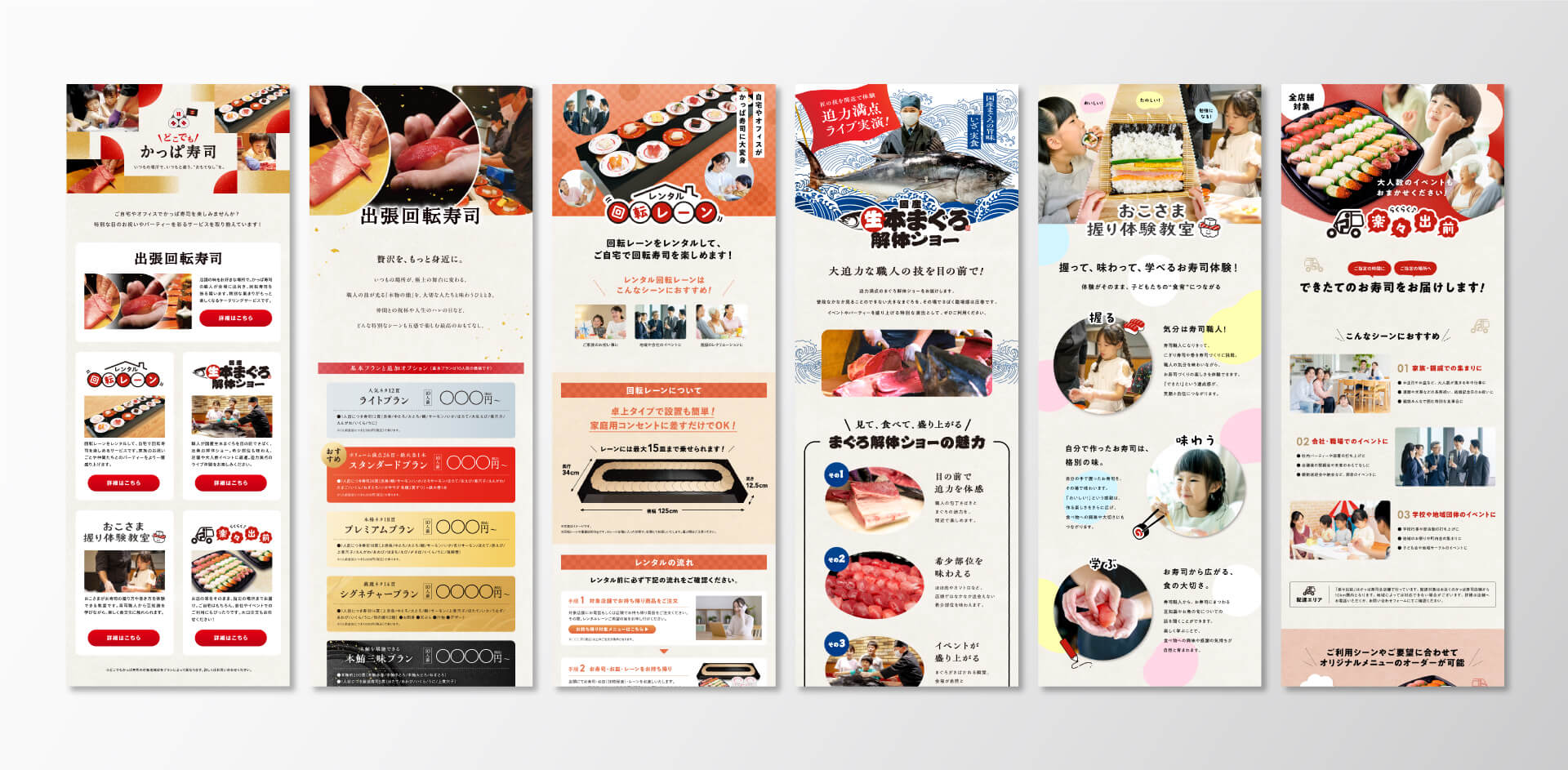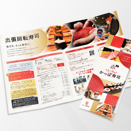 かっぱ寿司さまが提供するサービス『どこでもかっぱ寿司』のパンフレットおよびLPのリニューアルをご依頼いただきました。